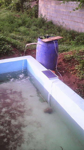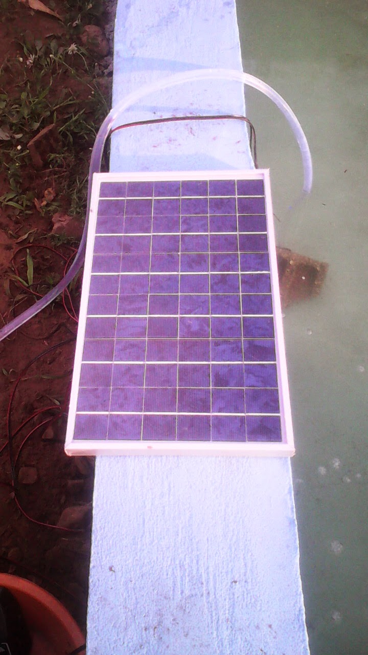Como é minha preocupação não gastar electricidade no lago, decidir projectar e montar um sistema solar e um filtro home made.