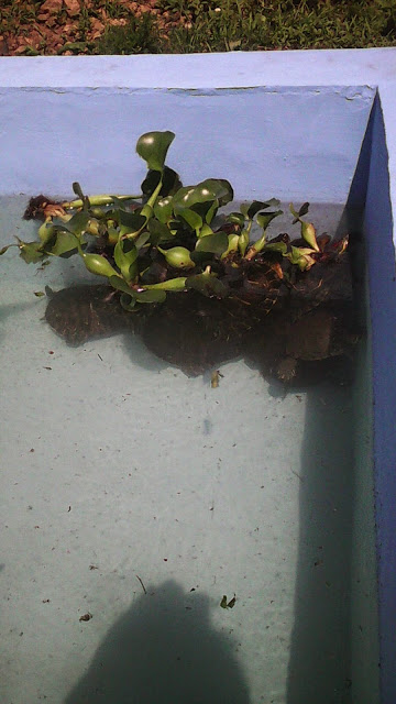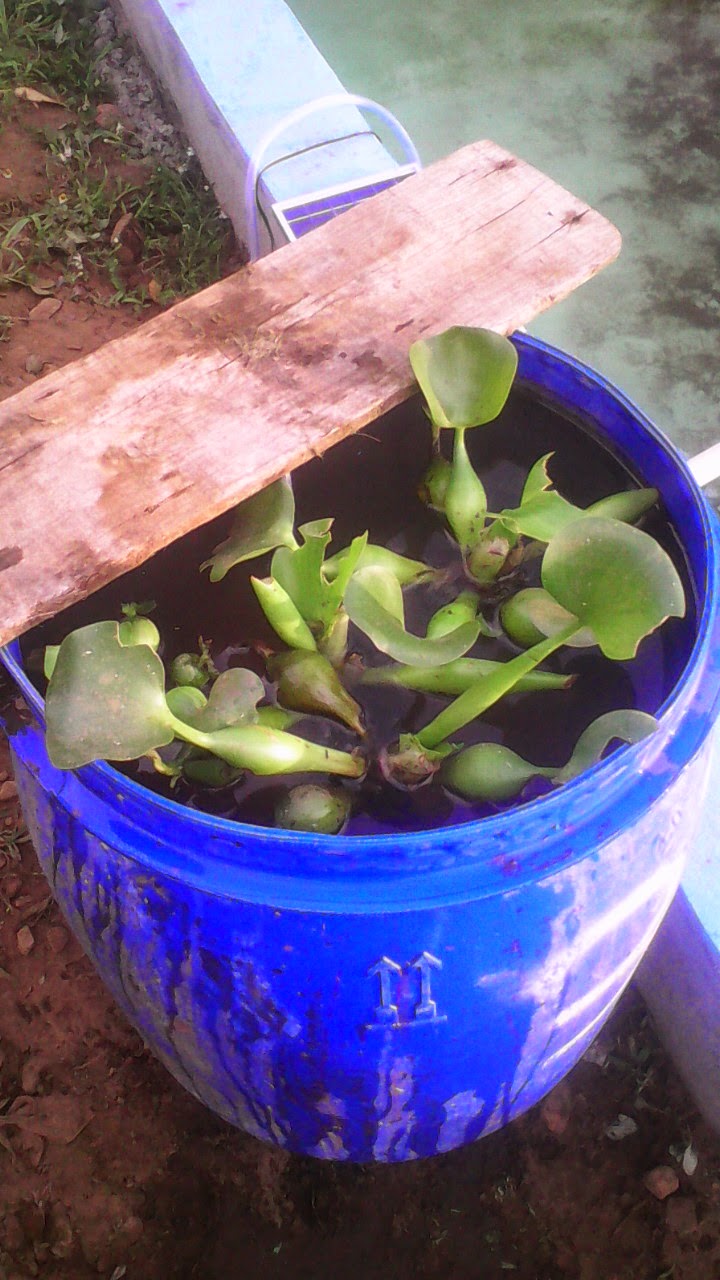 Hoje coloquei alguns jacintos, para limparem a água, dar algum esconderijo e ter vegetação na água.